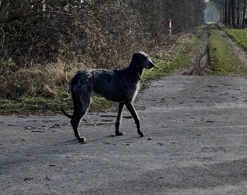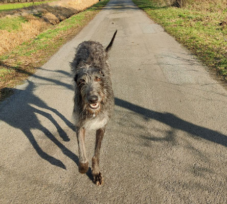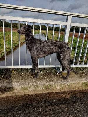 Sie liebt es, mit ihren besten Freundinnen Inghean und Fentje über die Wiese zu rennen. Bei Ausstellungen brilliert sie unter anderem mit ihrem tollen Gangwerk und ihrem wunderschönen Kopf.
